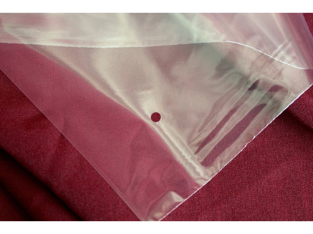 PP sáček s dírkou a lepicí klopou 350×450 mm (25/40 µm) v balení po 100 ks je určen pro větší katalogy, kalendáře, hry či textilní výrobky.